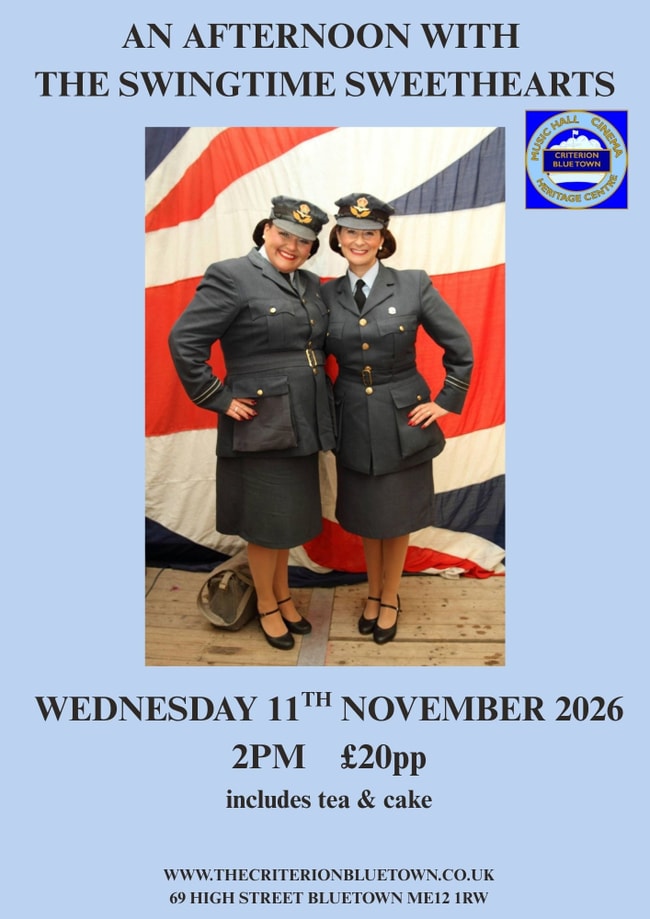 Swingtime Sweethearts, the UK’s No.1 Wartime Duo, are performing at the Criterion for our Remembrance Day event.