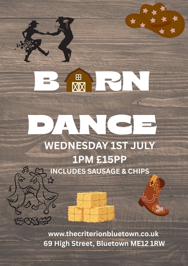 Join us for our Afternoon Barn Dance. With music from local musician, Steve Harding. We will have you jigging around the floor. Sausage & chips included.